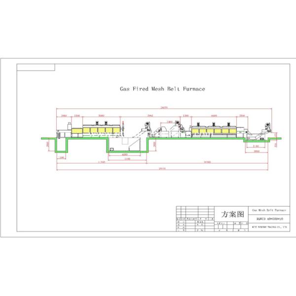 1 Mesh belt width: 400mm; 2 Heating length: 5000mm; 3 Power supply of the whole line: 70KW; Power consumption at normal working: about 25kW; 4 Total natural gas consumption: 720KW; 5 Heating control: 4 zones, PID control; 6 Temperature uniformity: ≤±5℃; 7 Furnace surface temperature rise: ≤50℃; 8 Transfer speed: 50~220mm/min frequency stepless adjustable; with real-time display meter.